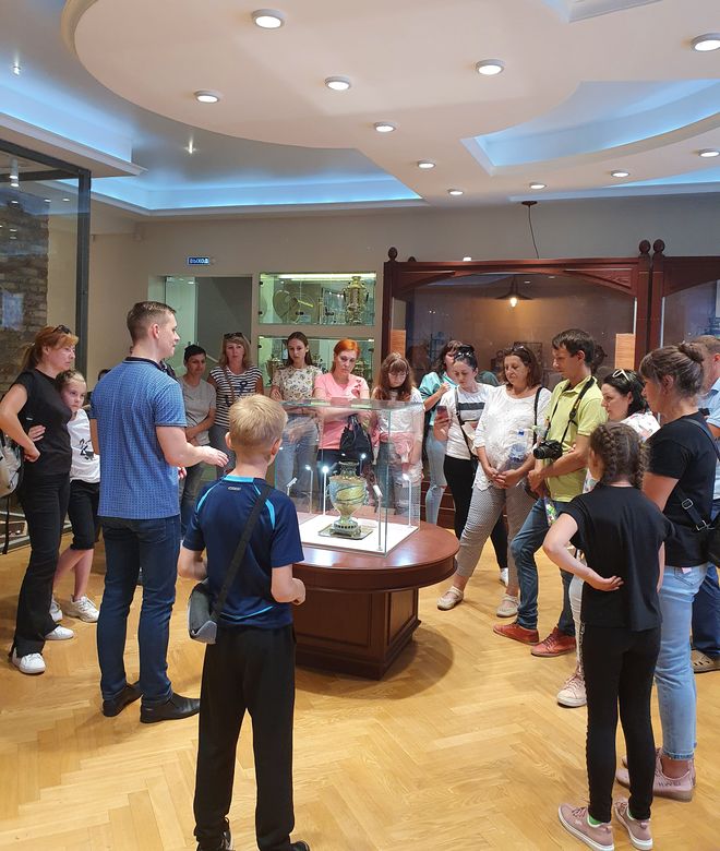 Третьей точкой маршрута стал музей «Тульские самовары» - куда без них!.. В музее большая коллекция самоваров, собранная за многие годы. Мы познакомились с шедеврами тульских мастеров самоварного дела XVIII - XIX веков. Там же, в музее, находится прототип самоваров — сбитенник, а также самовары, изготовленные на первой в Туле самоварной фабрике, основанной братьями Иваном и Назаром Лисициными. Представлены самовары фабрик Сомовых и Маликовых, возглавлявших самоварное дело в Туле в начале XIX века.