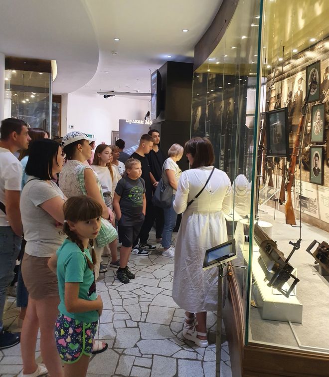 Здесь мы познакомились с постоянной экспозицией «История стрелкового и холодного оружия с XIV века до современности», а также с выставкой российской военной техники второй половины XX века «Стальные стражи».